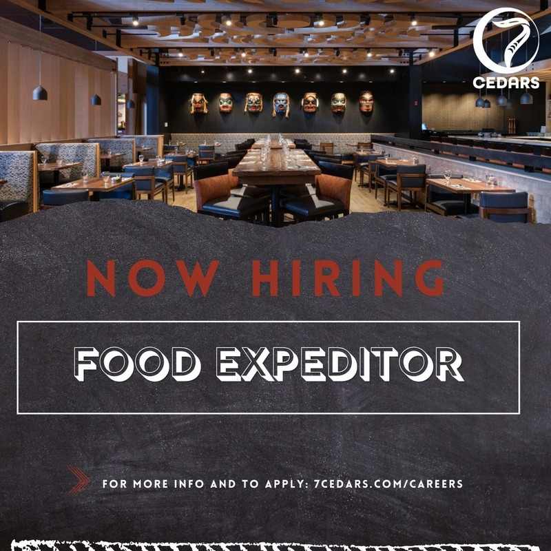 We are now hiring an Expeditor at House of Seven Brothers at 7 Cedars Casino---help coordinate orders and keep service running strong.The Food Expeditor works to keep a smooth workflow between the kitchen and the tables. You will work in a fast-paced environment to get proper orders out faster and more efficiently. As food expeditor, you must have excellent communication skills and experience in a restaurant's hectic setting. You must have enough stamina to be in constant motion and skills to coordinate and organize processes and people. The goal is to make service faster and better to help enhance our quality and reputation.